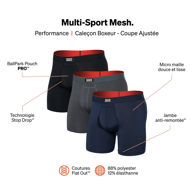 Multi Sport Mesh Boxer - Turbulence/ Navy/ Black 3 Pack